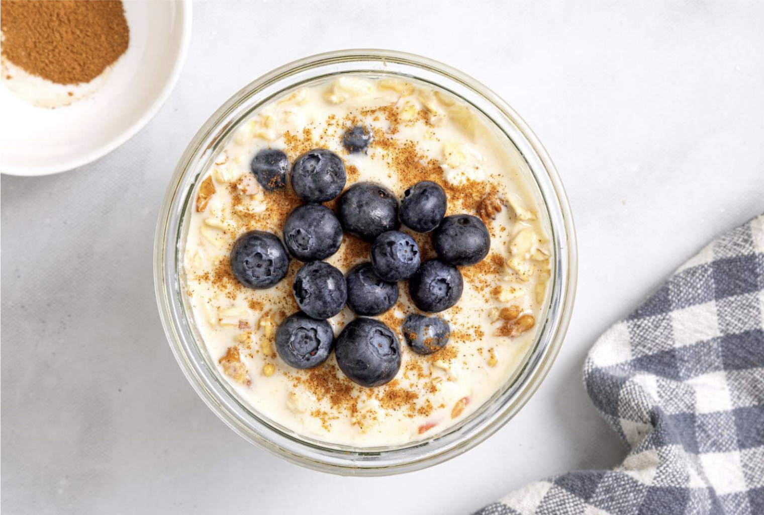 Instructions: Combine the oats and milk substitute in a container, mix well, and store in the refrigerator overnight. For more of a sweet taste, add the sugar into the mixture. To serve, top with a spoonful of peanut butter and/or fruit for a high-protein, satisfying start. It really does take at least 12 hours to get the right texture. If you don’t give the oats enough time, they won’t properly absorb all of the milk